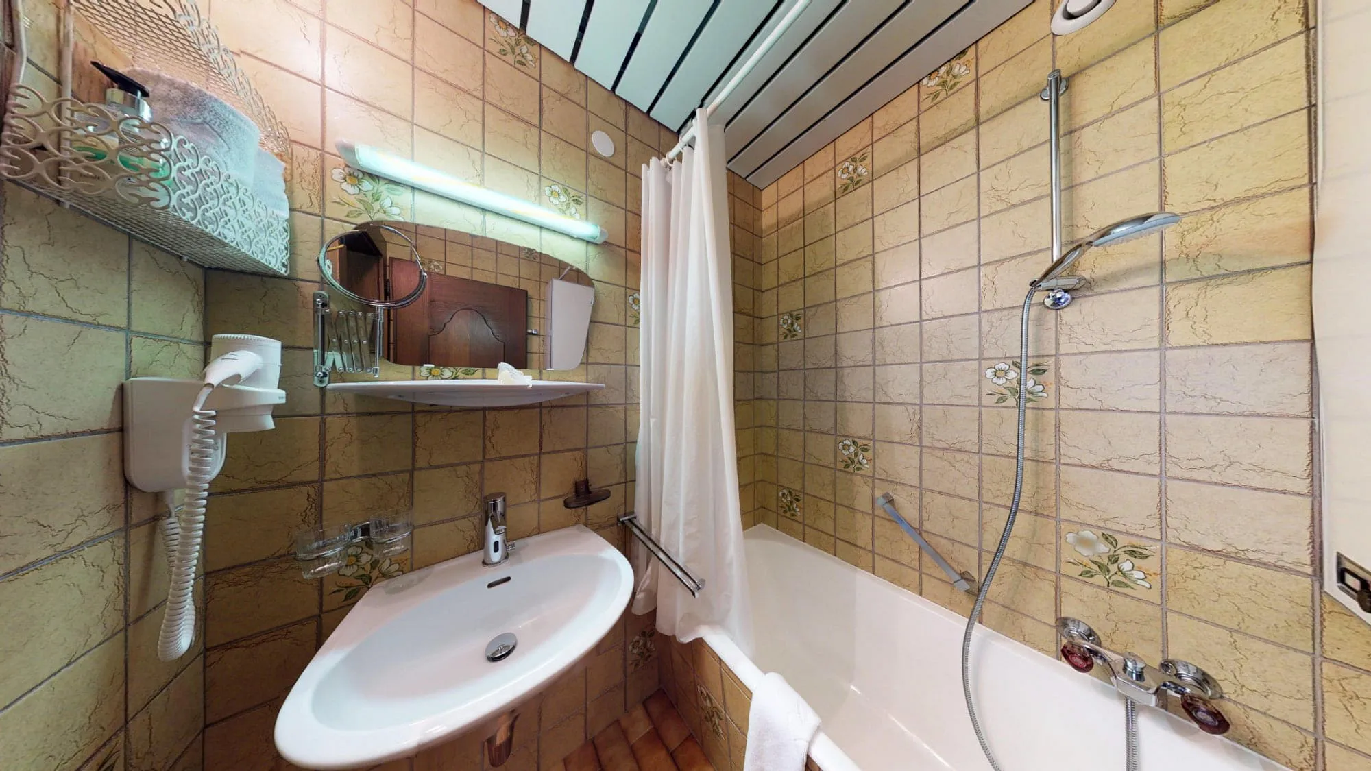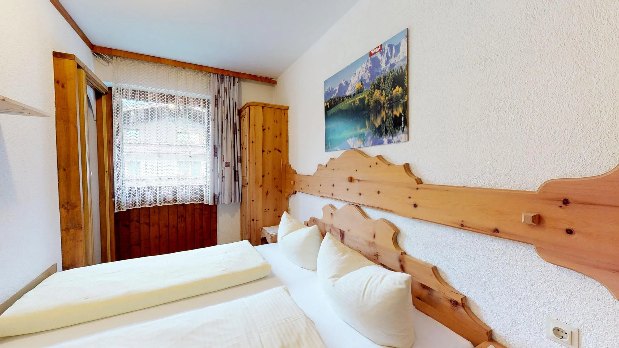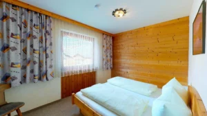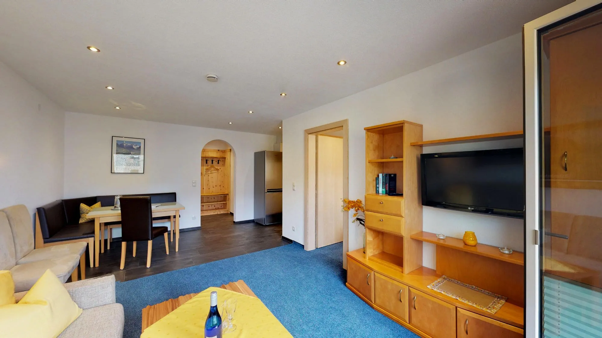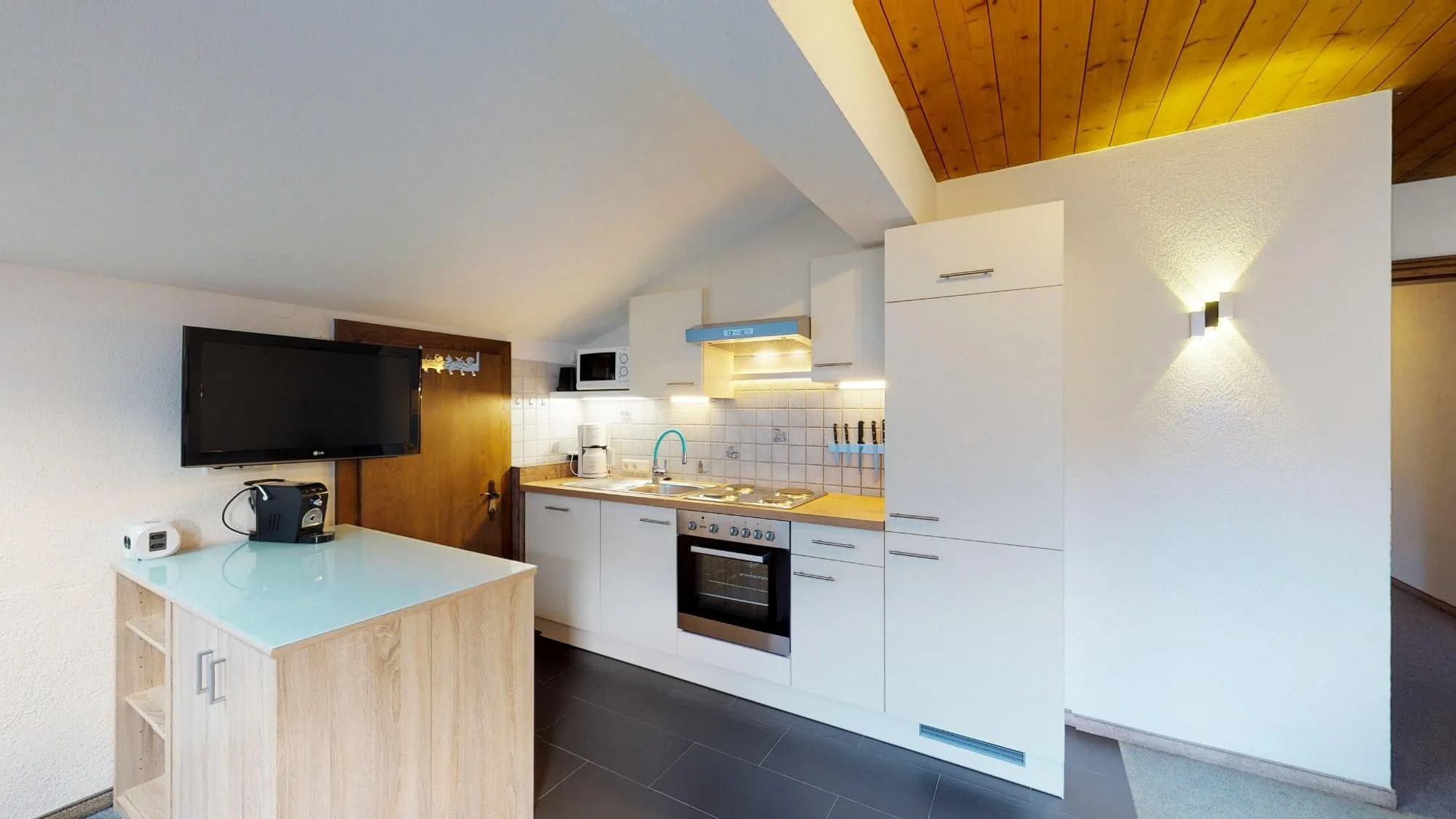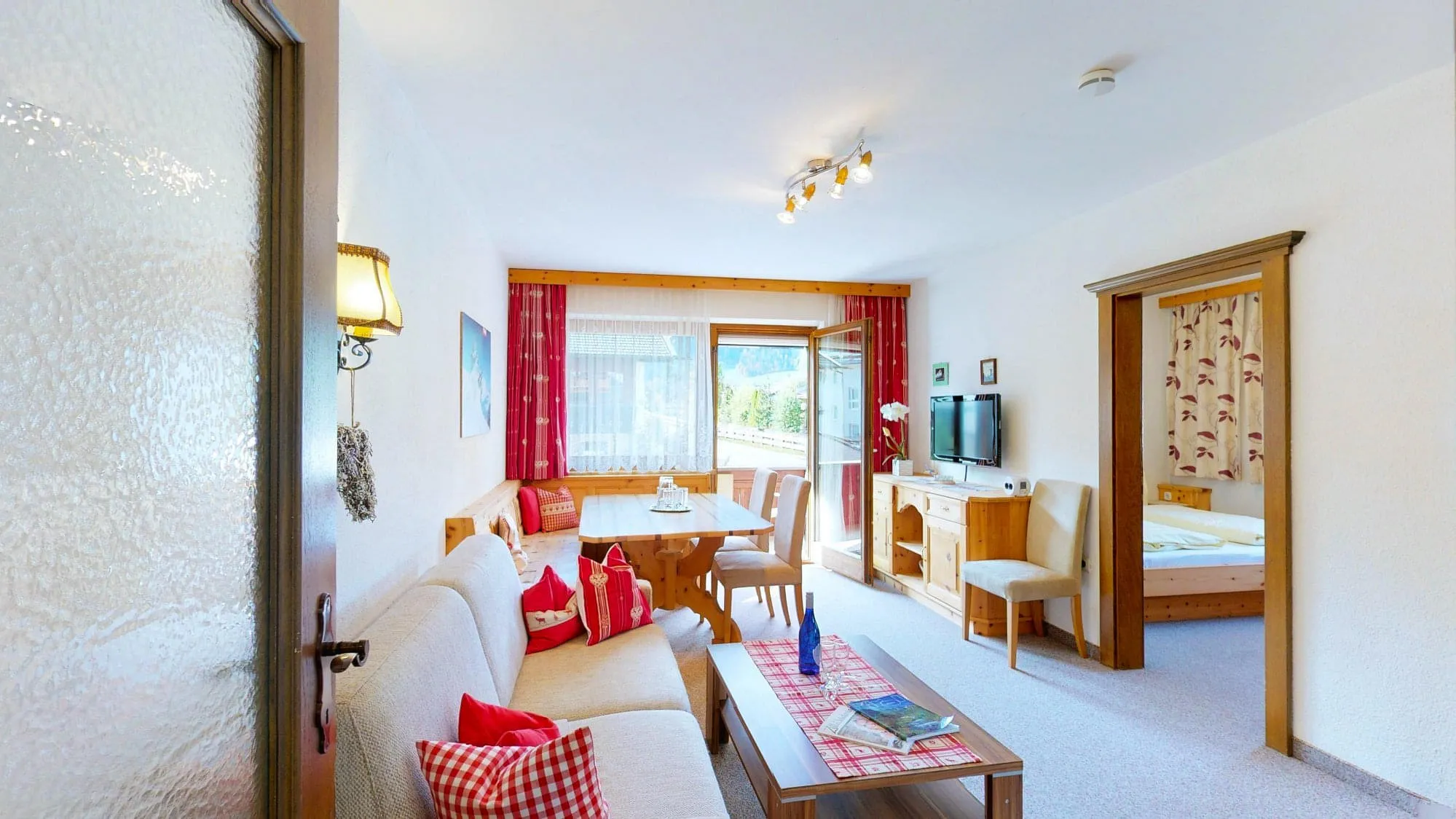 Urządzony w tyrolskim stylu apartament przeznaczony jest dla 2-4 osób. Idealnie nadaje się do wypoczynku dla rodziny z 2 dzieci. W skład apartamentu wchodzi przestronny pokój gościnny z Sat-TV, dwuosobowy komplet wypoczynkowy, stół. W dalszej części znajduje się w pełni wyposażona kuchnia z (patrz tabela), a także sypialnia z podwójnym łóżkiem małżeńskim i szafą, łazienka oraz oddzielna toaleta. Uwaga! Na wyposażeniu mieszkania nie ma ręczników kąpielowych ani kuchennych.