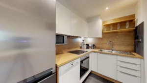 W skład apartamentu wchodzi przestronny salon z Sat-TV, komplet wypoczynkowy, część jadalniana z dużym stołem, w pełni wyposażona kuchnia (patrz tabela). W dalszej części znajdują się trzy sypialnie: dwie z łóżkami małżeńskimi i sypialnia z łóżkiem piętrowym. Na wyposażeniu mieszkania znajduje się także łazienka z sauną oraz oddzielna toaleta.