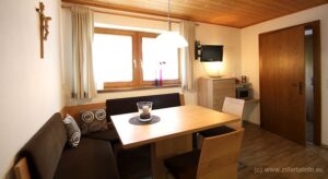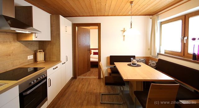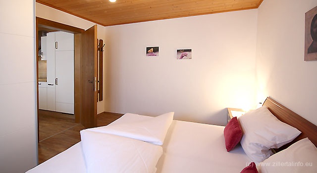 Urocze mieszkanie na parterze o powierzchni 40 m² przeznaczone jest dla 2-4 osób (2 os. dorosłe + 2 dzieci, ew. 3 os. dorosłe). W skład apartamentu wchodzą: salon z w pełni wyposażonym (patrz tabela) aneksem kuchennym, łazienka z toaletą oraz dwie sypialnie, z których w pierwszej znajduje się łóżko małżeńskie, a w drugiej łóżko dwuosobowe (szerokość łóżka 140 cm). Z tarasu rozpościera się cudowny widok na szczyty górskie oraz Gerlosberg.