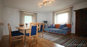 Top 1 składa się z pokoju gościnnego z w pełni wyposażonym aneksem kuchennym (patrz tabela), odbiornik Sat-TV. W dalszej części znajdują się: dwie sypialnie, w którym są łóżka małżeńskie i dostawka (w jednej z sypialni jest piec kaflowy); łazienka oraz osobna toaleta. Uwaga! Na wyposażeniu mieszkania nie ma ręczników kąpielowych.