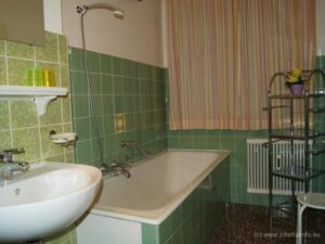 Apartament składa się z pokoju gościnnego z balkonem, SAT-TV, kompletem wypoczynkowym, stołem i krzesłami, przy którym można spożywać wspólne posiłki. W dalszej części znajduje się: w pełni wyposażona kuchnia (patrz tabela); dwie sypialnie z podwójnym łóżkiem (dodatkowo w jednej jest pojedynczy tapczan), sypialnia z pojedynczym łóżkiem, łazienka i osobna toaleta. Uwaga! Na wyposażeniu mieszkania nie ma ręczników kąpielowych.