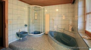 W skład mieszkania wchodzi: pokój dzienny z rozkładanym kompletem wypoczynkowym; sypialnia z podwójnym łóżkiem małżeńskim, pojedynczym łóżkiem; stolik z krzesłami, Sat-TV; aneks kuchenny wyposażony (patrz tabela). W dalszej części apartamentu znajduje się łazienka i toaleta.